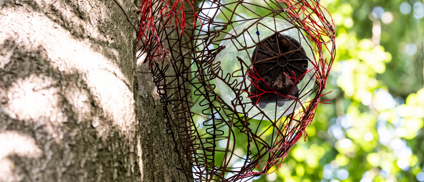 Susanne Sørensen heeft voor Eilandje een volk van motoronderdelen en stukken skelet gemaakt. Het zijn wezens die alleen in beukenbomen voorkomen. Zij beschermen hun nest -met ei -, dat er fragiel uitziet, maar gemaakt is van onverwoestbaar betonijzer. De wezens weven rode, netachtige levensstructuren, die ook op het dooraderde nest te zien zijn. Het werk toont haar fascinatie voor het schijnbare contrast tussen kracht en kwetsbaarheid.