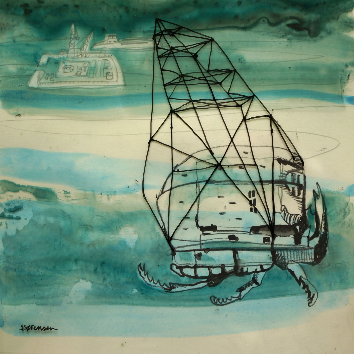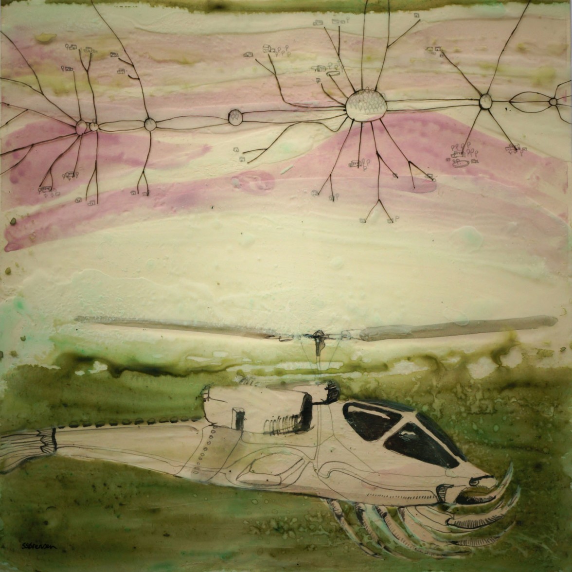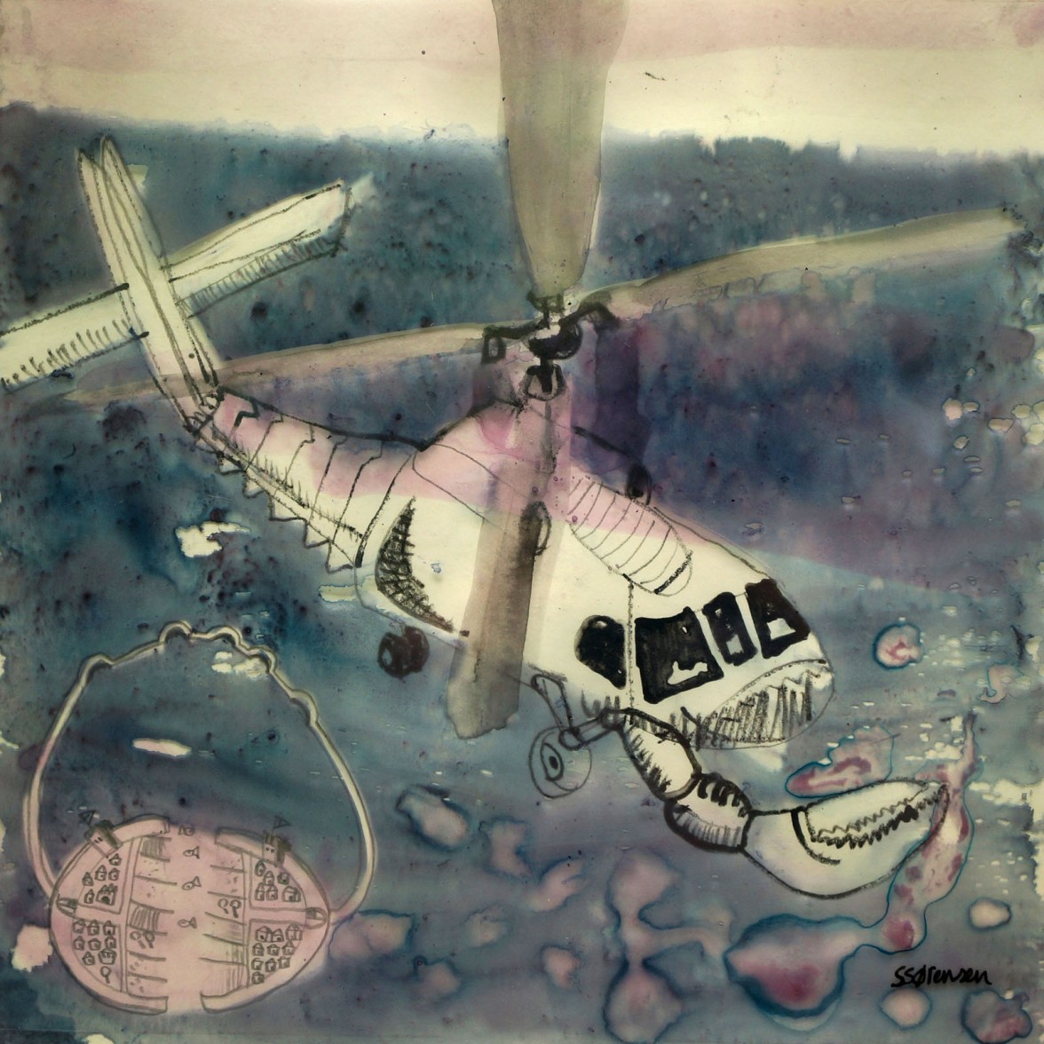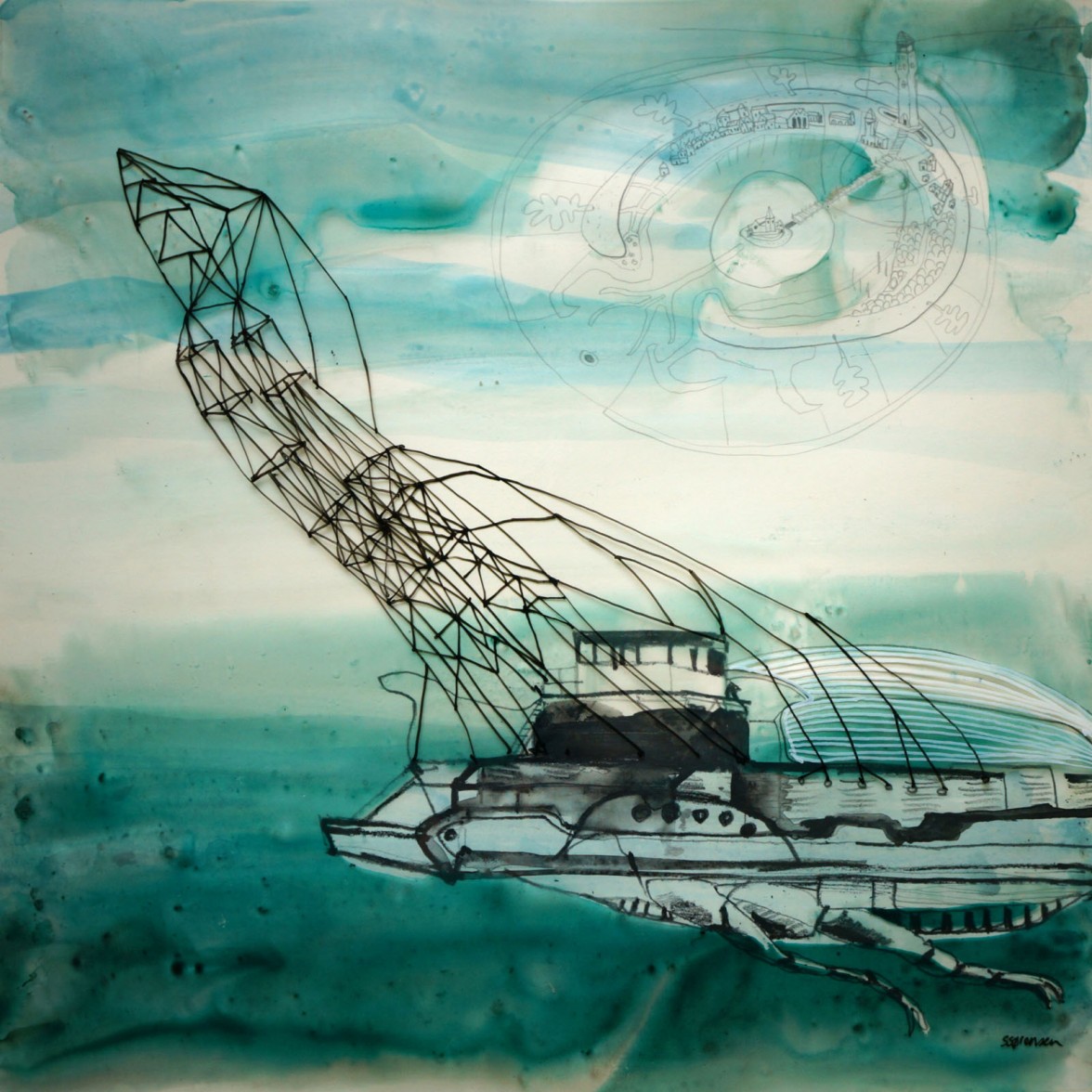 In this growing series of over 100 works, Sørensen shows a scala of secret life forms. Their bodies are fusions of mechanic constructions and biologically evolution. All amazingly adapted to their specific, and often confidential tasks. Undercover transmitters, sea spies, wind voyagers and cloud riders observe, search and look around. Deep in the seas or high above the land. Not always knowing wat to expect or what to find.