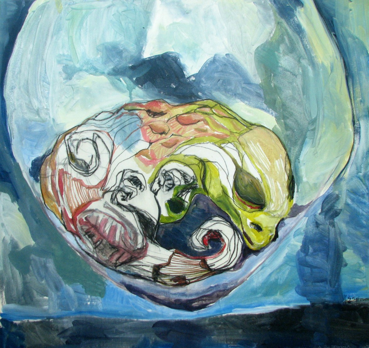“The book of life” is an ode to life itself, celebrating its power. Sørensen studied many life forms, which she documented in drawings and paintings. Not only anatomy, but also habitat, behaviour, and propagation are object of her studies. Her fascination for the mystery of the origin of life is clear, illlustrating the hidden world within eggs, egg capsules and womb.