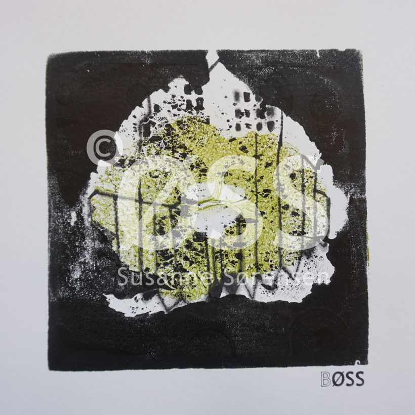 Van de serie ‘Monoprints Bladeren’. Unieke prints gemaakt met acryl op papier. Het formaat is exclusief lijst. Deze serie gaat levende gemeenschappen. Natuur en mens.