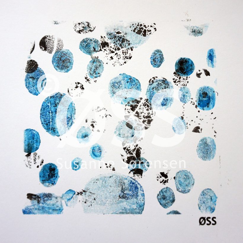 Van de serie ‘Monoprints Werelden’. Unieke prints gemaakt met acryl op papier. Het formaat is exclusief lijst. Deze serie gaat over de micro en macro wereld. Planeten en cellen.